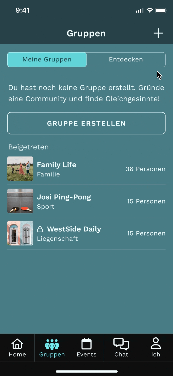 Hast du gewusst, dass sie deine Nachbarn die gleichen Interessen wie du haben? Trete einer Gruppe bei und tausche dich mit ihnen über die Themen aus, die euch beschäftigen oder erfreuen! Falls du nicht fündig wirst, helfen wir dir gerne mit treffenden Vorschlägen!